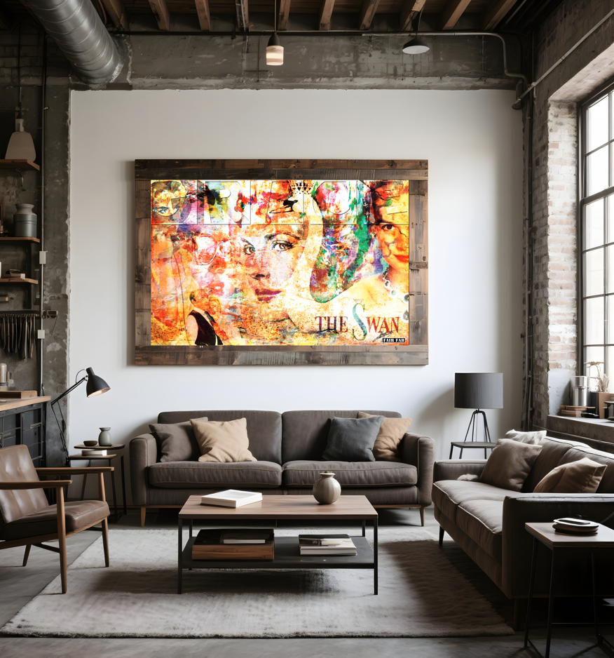 Grace – The Swan is a vibrant and emotionally rich tribute to Grace Kelly, Hollywood icon and Princess of Monaco. The artwork is centered on a reinterpretation of her 1956 film “The Swan,” combining elements of romantic elegance, cinematic nostalgia, and regal poise.