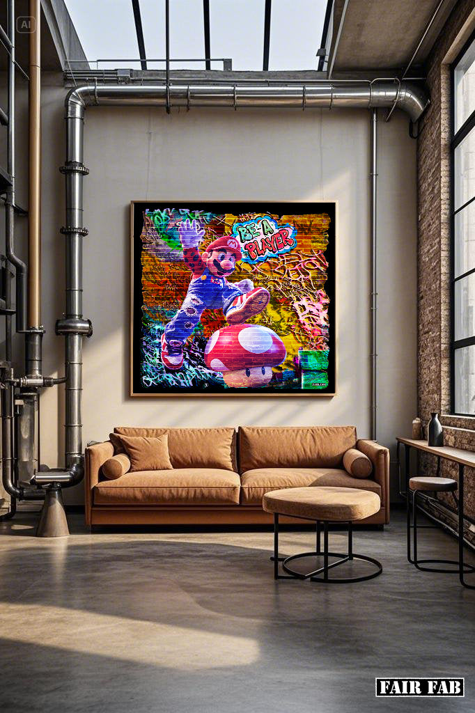 🎮 Mood & Interpretation: This mural doesn't just depict Mario—it transforms him. He becomes a symbol of leveling up in real life, fighting through chaos with joy, style, and purpose. It’s a visual shoutout to anyone chasing stars, jumping obstacles, and refusing to be just another background character.