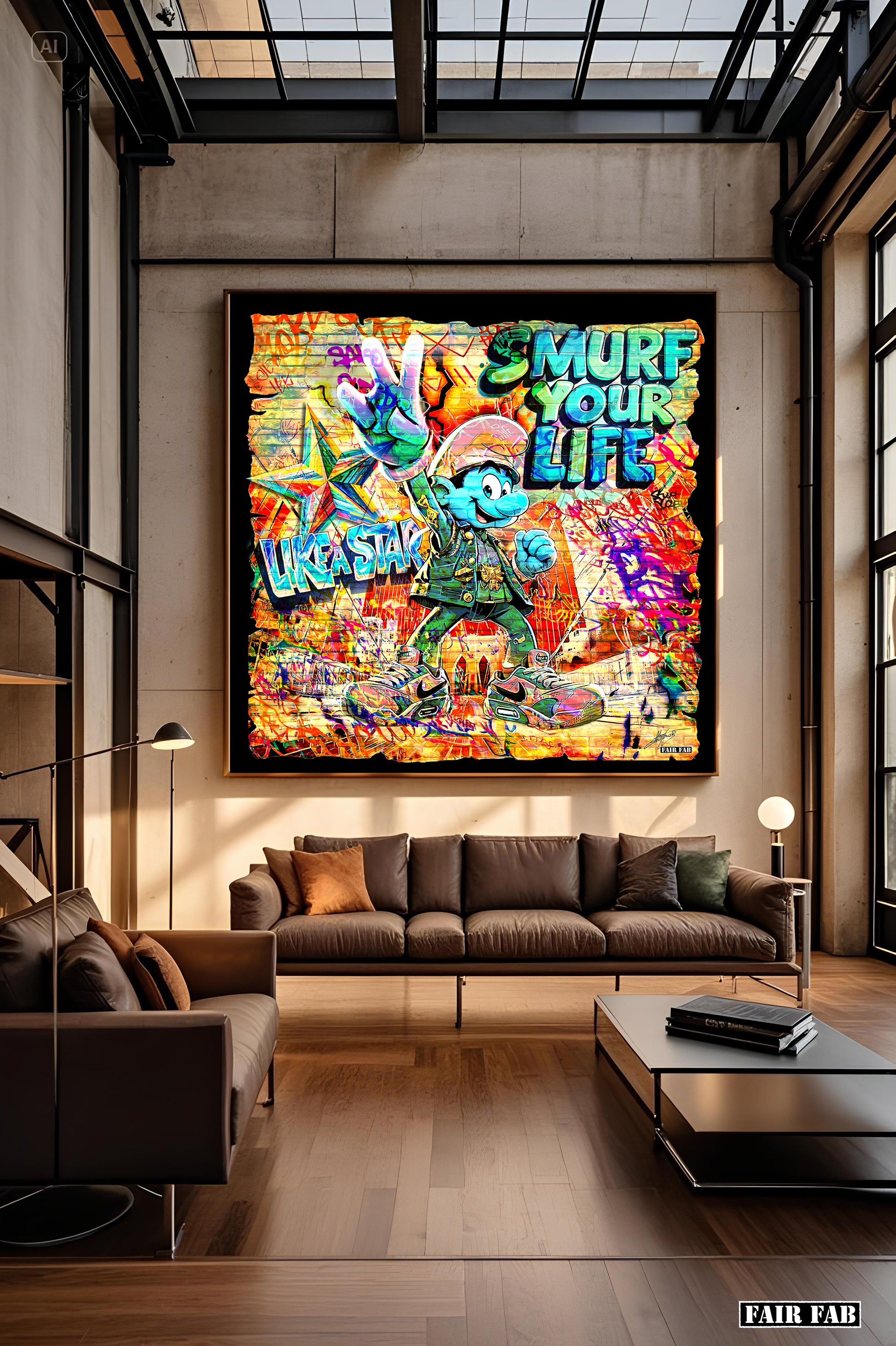 🌟 Mood & Interpretation: This is not your childhood Smurf—it’s the voice of the alleyway, the stylized whisper of resistance through painted brick. It calls out to "smurf your life"—to live uniquely, joyfully, and a little rebelliously.